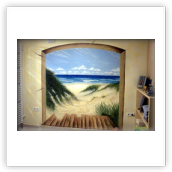 Im Reisebüro macht eine Szene aus der Toskana Lust auf Urlaub, in einer Bäckerei schaffen Ansichten der Stadt Heimatgefühl und in einem griechischen Lokal sorgt ein Blick auf die Akropolis für Appetit: Wandmalereien bringen Atmosphäre in alle Räume. HASE-DESIGN bemalt Wände ganz nach Wunsch – und arbeitet auch gerne für Schausteller, Inneneinrichter, Raumgestalter und Menschen, die sich ihr Eigenheim mit ausgefallenen Ansichten verschönern wollen.